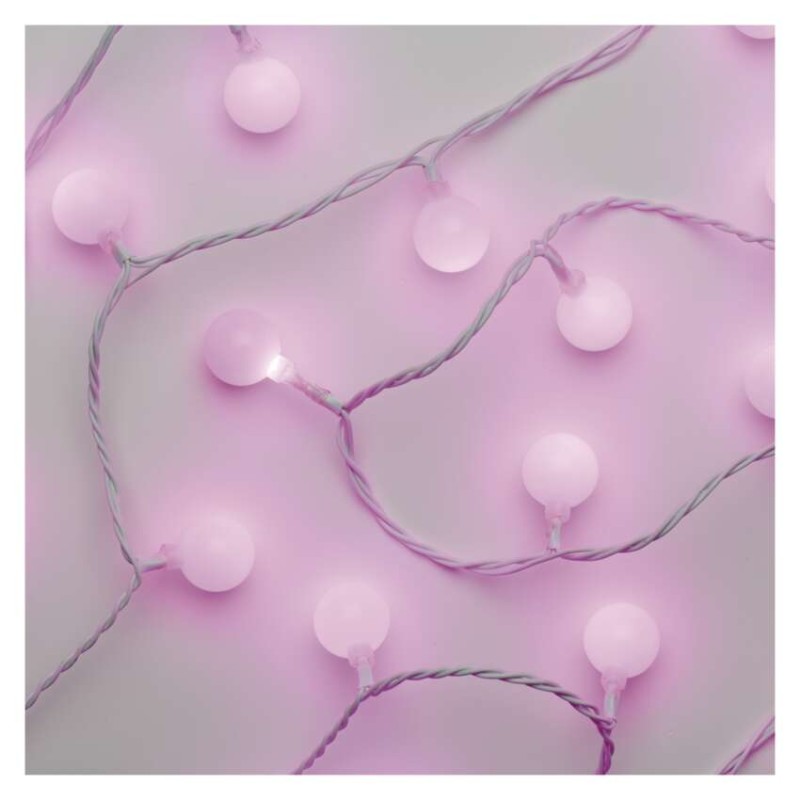 LED světelný cherry řetěz – kuličky 2,5 cm, 4 m, venkovní i vnitřní, růžová, časovač
