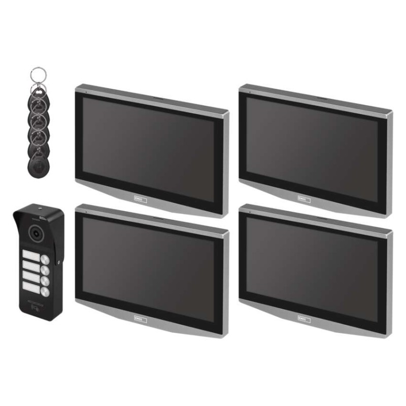 počet monitorů 4, počet kamerových jednotek 1, počet tlačítek kamerové jednotky 4, dveřní zámek součástí balení ne, zdroj pro zámek součástí balení ne