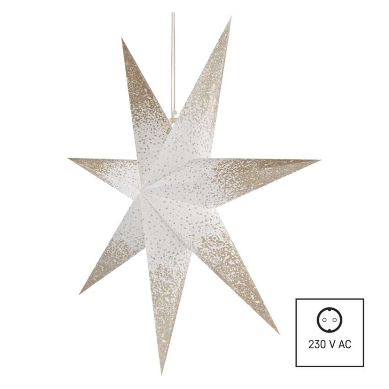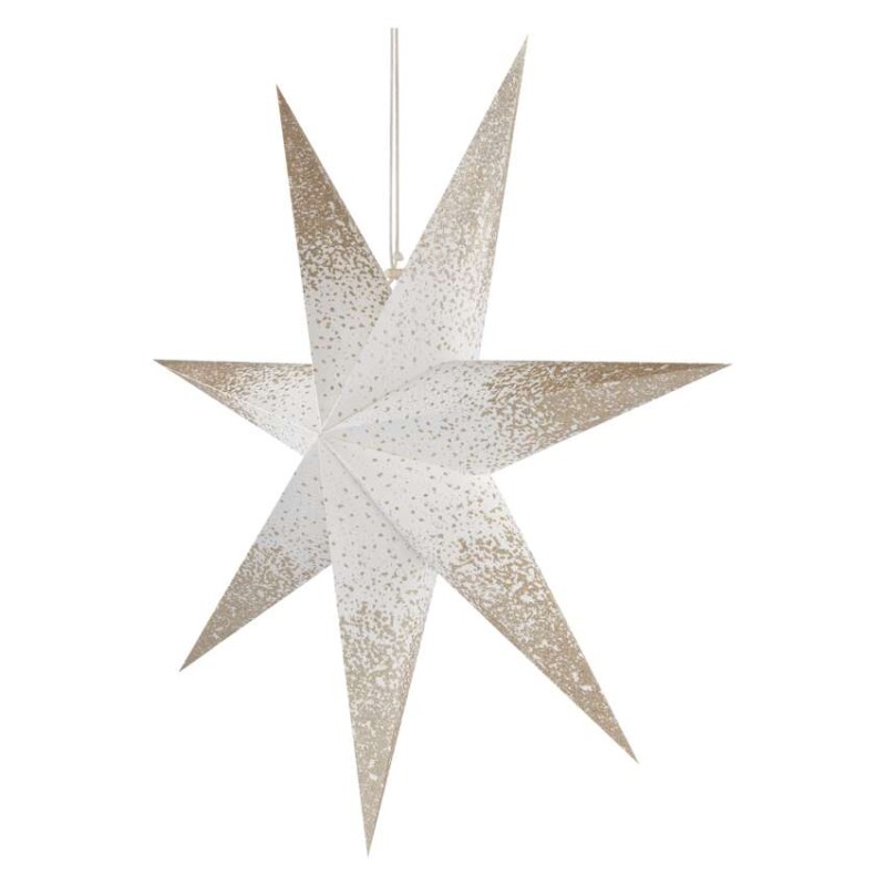 Vánoční hvězda papírová závěsná se zlatými třpytkami na okrajích, bílá, 60 cm, vnitřní