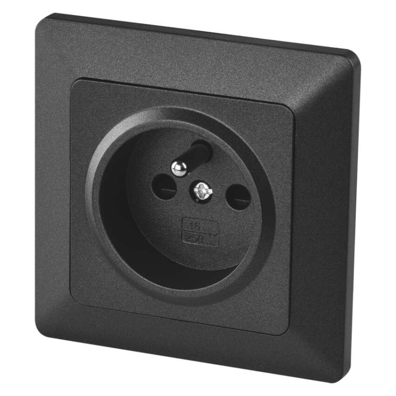 produkt zásuvka jednonásobná s ochranným kolíkem a dětskými clonkami, barva antracit, způsob montáže do krabice, krytí IP20